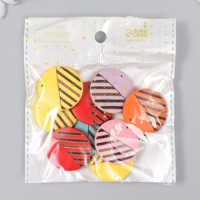 Декор для творчества дерево «Круг с диагональными полосками», 3×3×0.5 см, МИКС — Характеристики