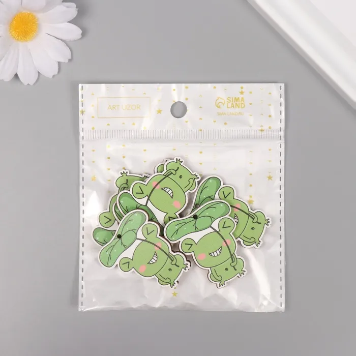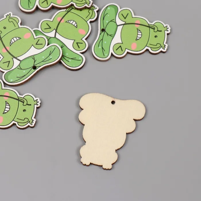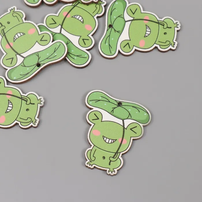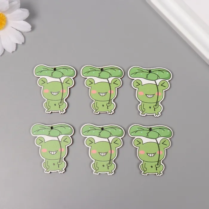 Декор для творчества дерево «Лягушка под листиком», набор 6 шт., 4×3.5×0.3 см — Характеристики