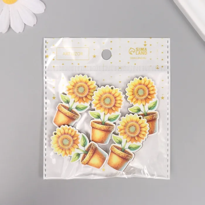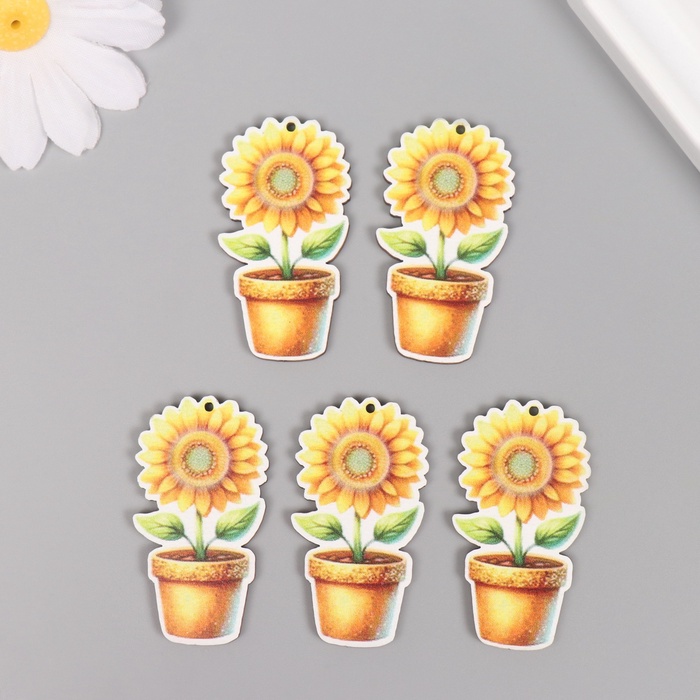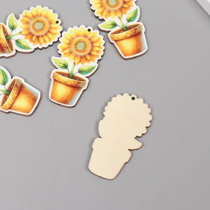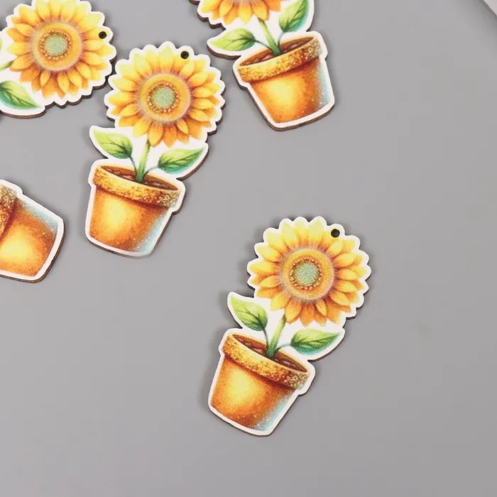 Декор для творчества дерево «Подсолнух в горшке», 4.6×2.5×0.3 см — Характеристики