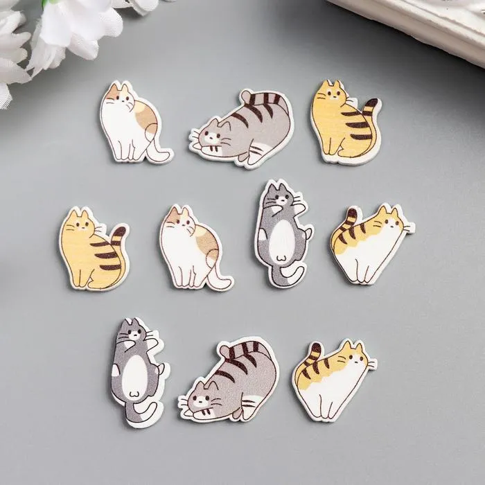Декор для творчества дерево «Полосатые коты», набор 10 шт., 2.2×1.6 см