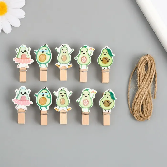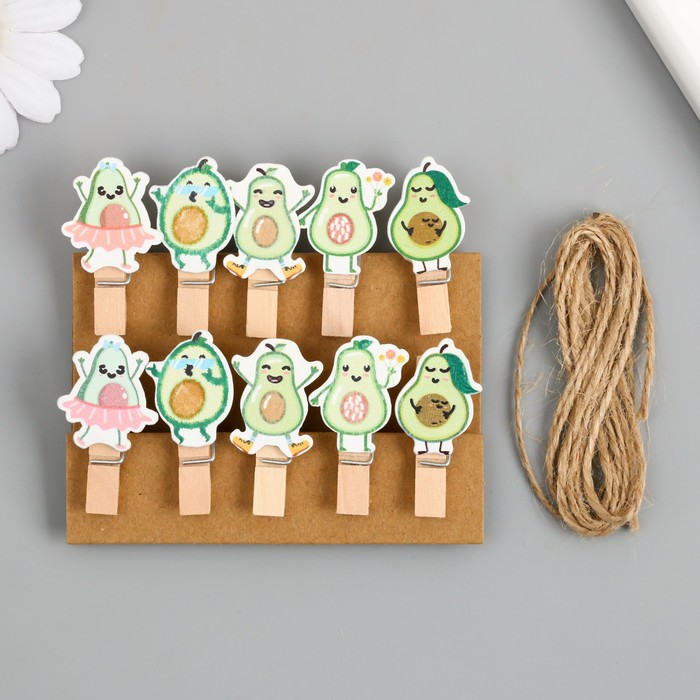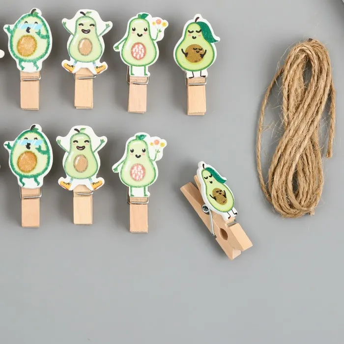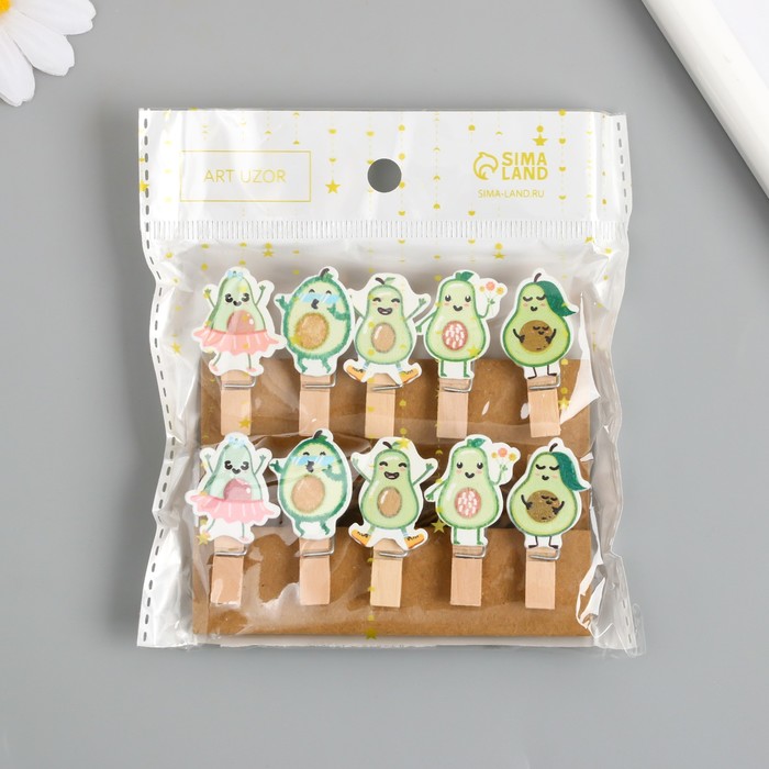 Декор для творчества дерево «Прищепка. Авокадо и танцы», набор 10 шт., 3.9×2.3×1.2 см