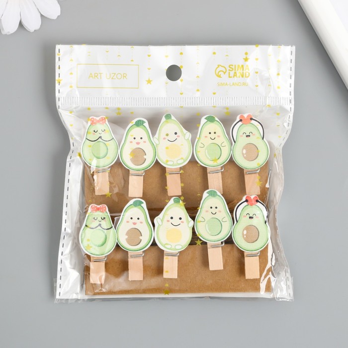 Декор для творчества дерево «Прищепка. Авокадо», набор 10 шт., 3.8×1.9×1.2 см