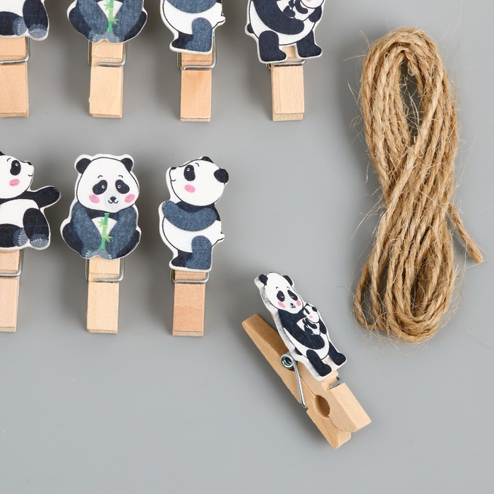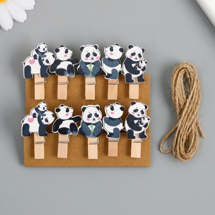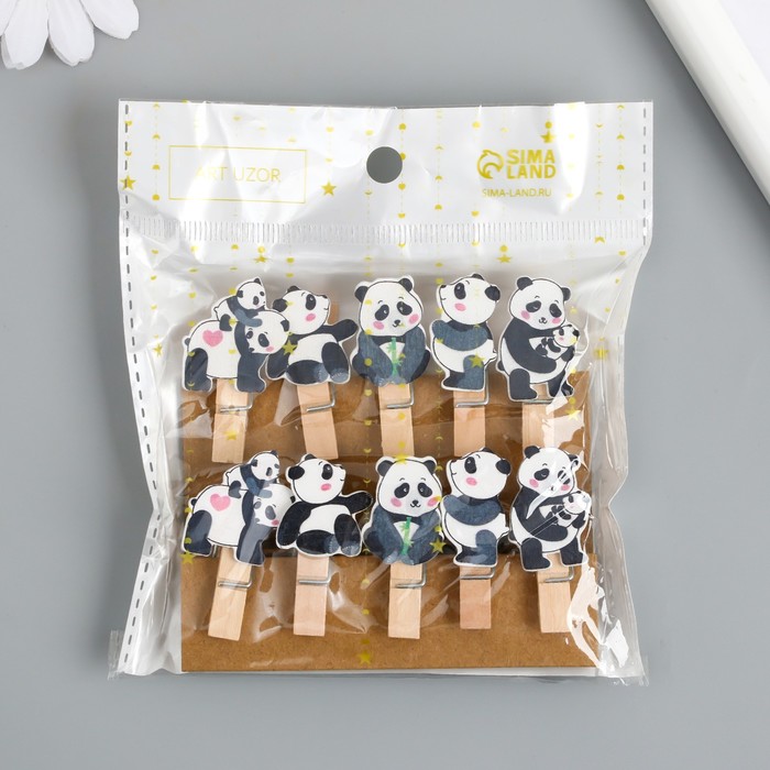 Декор для творчества дерево «Прищепка. Панды», набор 10 шт., 4.2×2.3×1.2 см