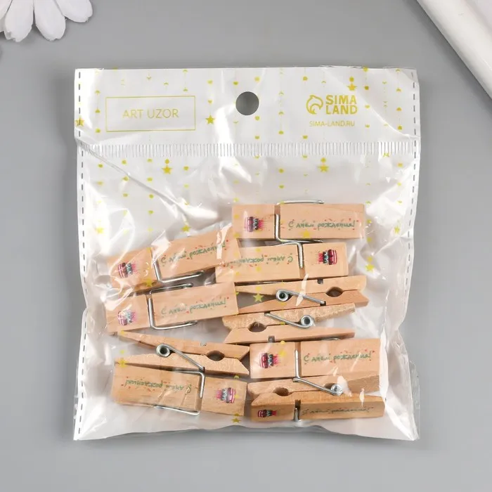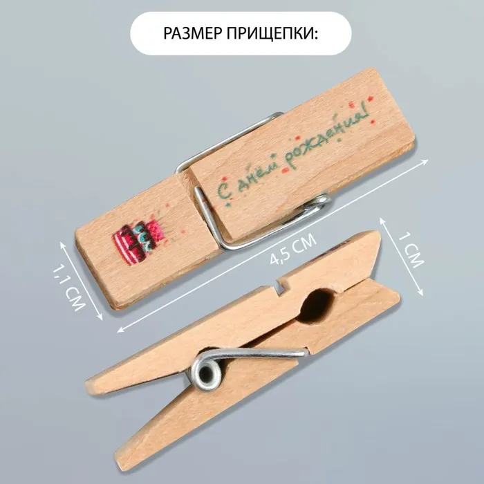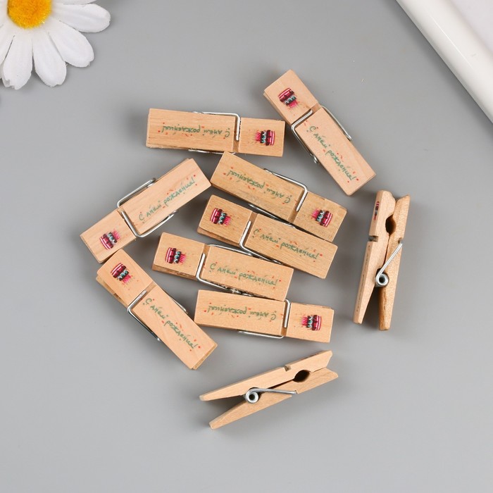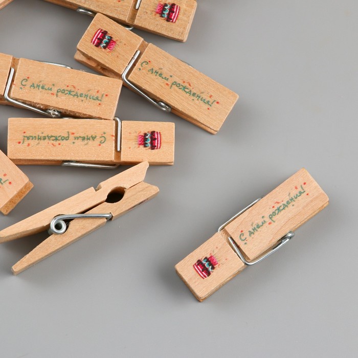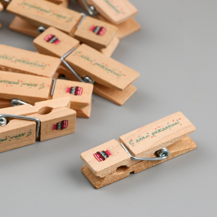 Декор для творчества дерево «Прищепка - С днём рождения!», набор 10 шт. — Характеристики