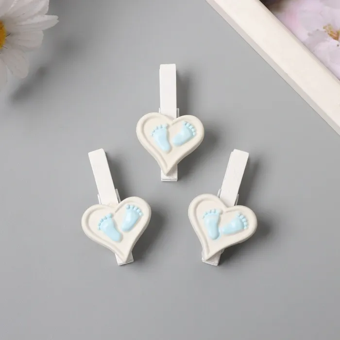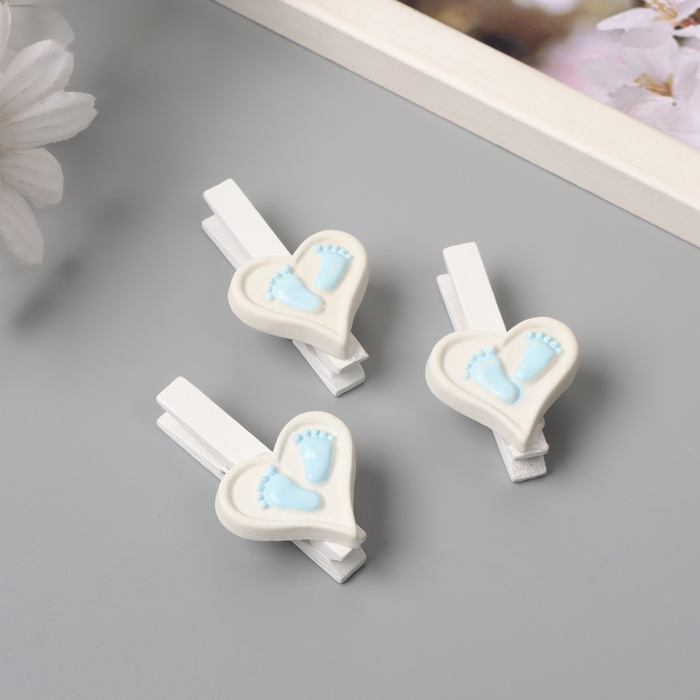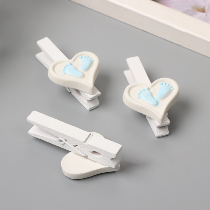 Декор для творчества дерево «Прищепка. Сердце с ножками», голубой, набор 3 шт., 1.7×3×5 см