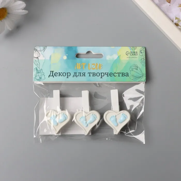Декор для творчества дерево «Прищепка. Сердце с ножками», голубой, набор 3 шт., 1.7×3×5 см — Характеристики
