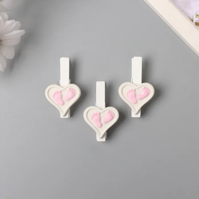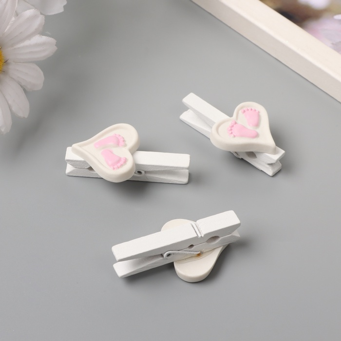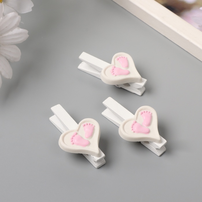 Декор для творчества дерево «Прищепка. Сердце с ножками», розовый, набор 3 шт., 1.7×3×5 см