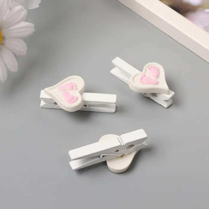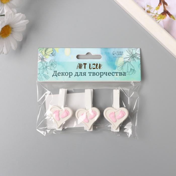 Декор для творчества дерево «Прищепка. Сердце с ножками», розовый, набор 3 шт., 1.7×3×5 см — Характеристики
