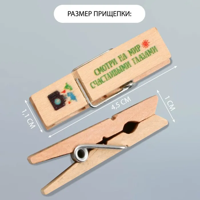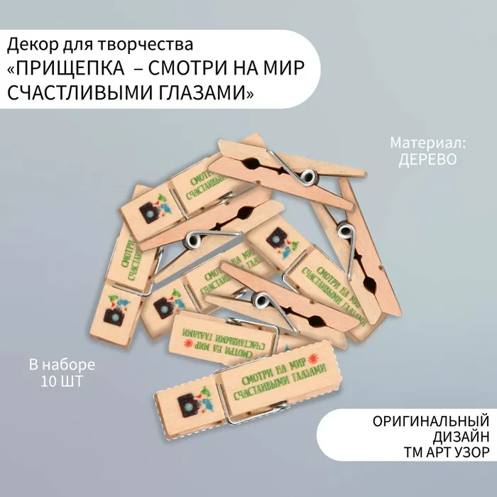 Декор для творчества дерево «Прищепка - Смотри на мир счастливыми глазами», набор 10 шт. — Характеристики