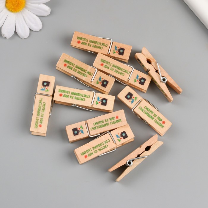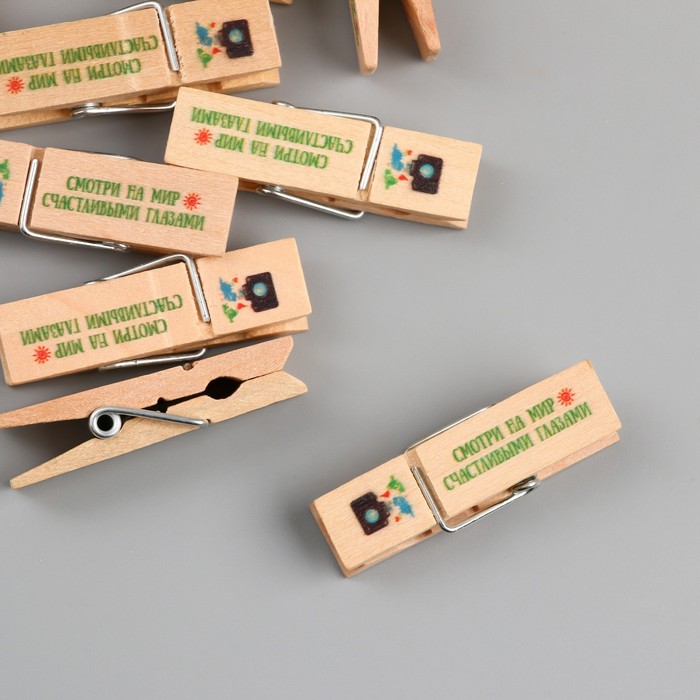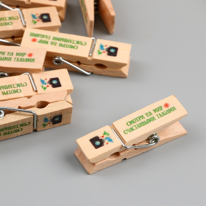 Декор для творчества дерево «Прищепка - Смотри на мир счастливыми глазами», набор 10 шт.