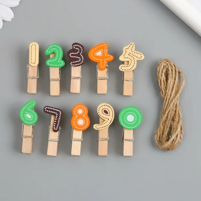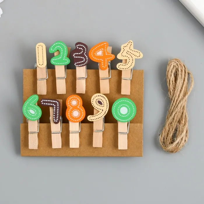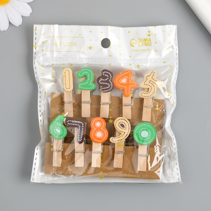 Декор для творчества дерево «Прищепка. Цифры», набор 10 шт., 3.7×1.5×1.2 см