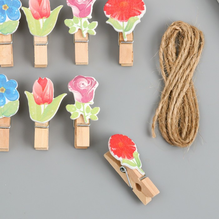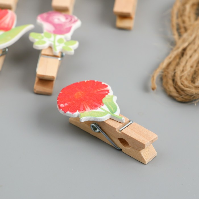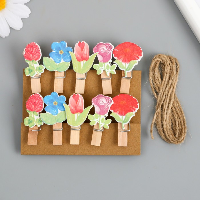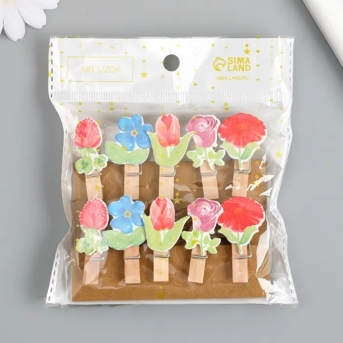 Декор для творчества дерево «Прищепка. Цветочки», набор 10 шт., 4×2.3×1.2 см