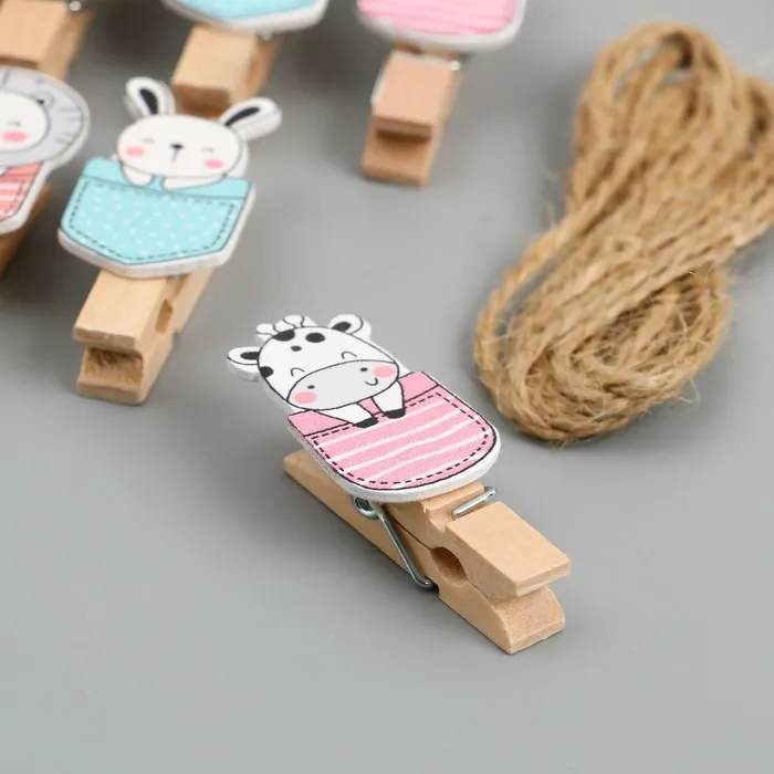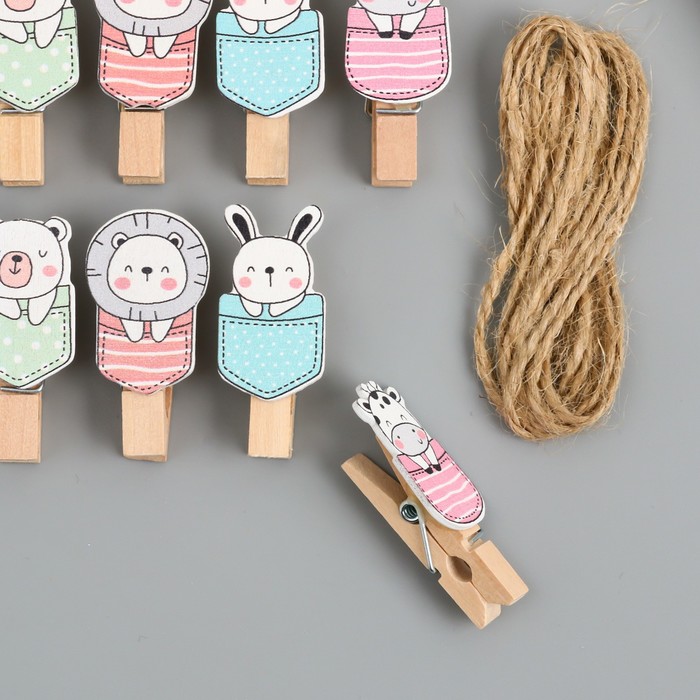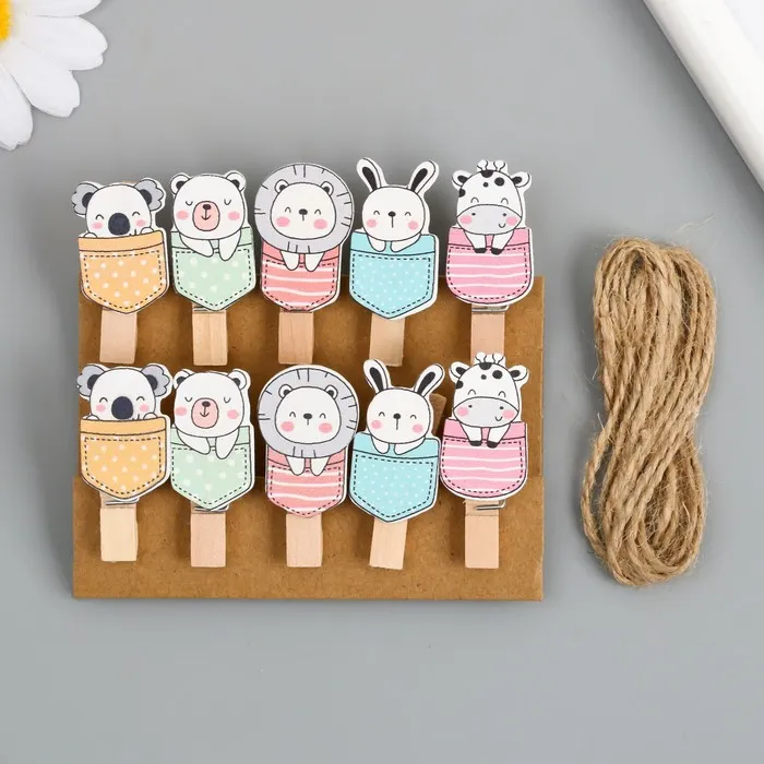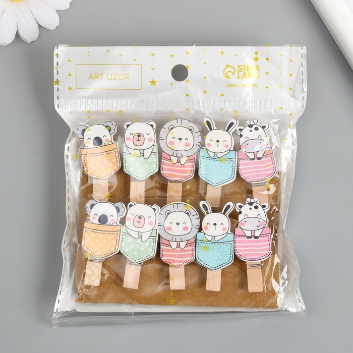 Декор для творчества дерево «Прищепка. Зверята в кармашках», набор 10 шт., 3.8×2×1.2 см