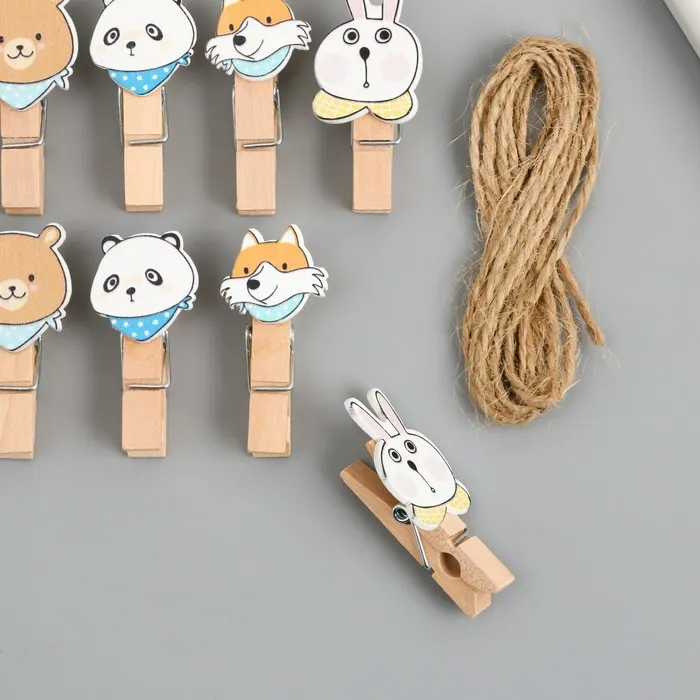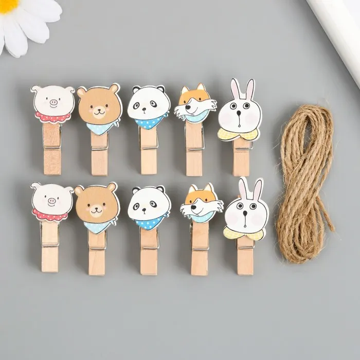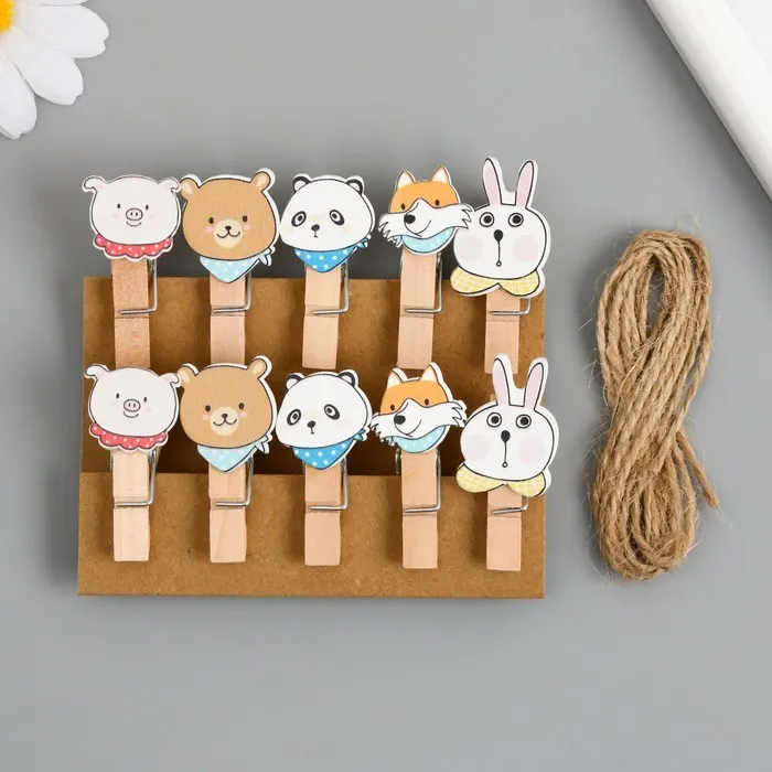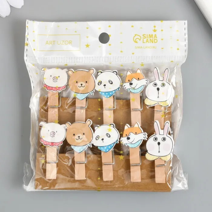 Декор для творчества дерево «Прищепка. Зверята в платочках», набор 10 шт., 3.8×2×1.2 см — Характеристики