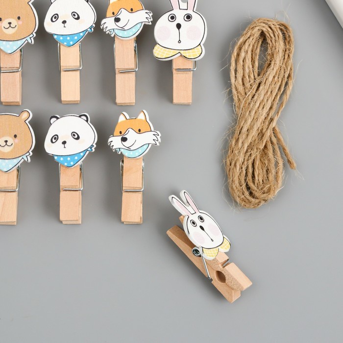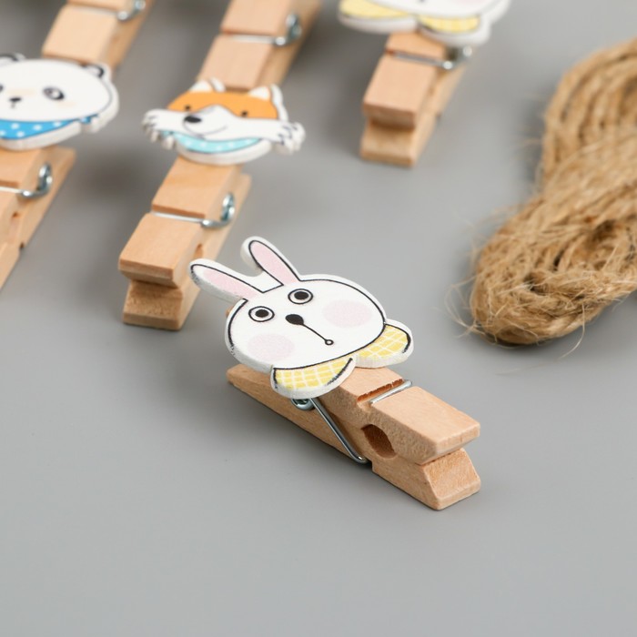 Декор для творчества дерево «Прищепка. Зверята в платочках», набор 10 шт., 3.8×2×1.2 см