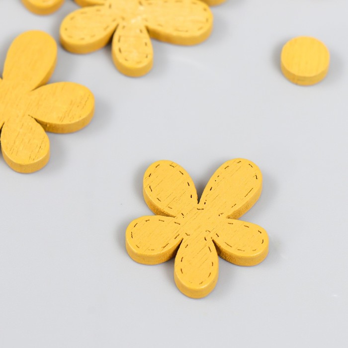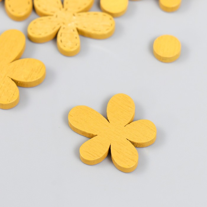 Декор для творчества дерево «Ромашка и сердцевинка», набор 10+10 шт., горчичный, 2.3×2 см