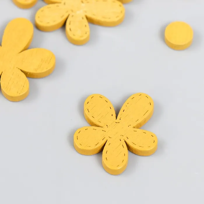 Декор для творчества дерево «Ромашка и сердцевинка», набор 10+10 шт., горчичный, 2.3×2 см — Характеристики