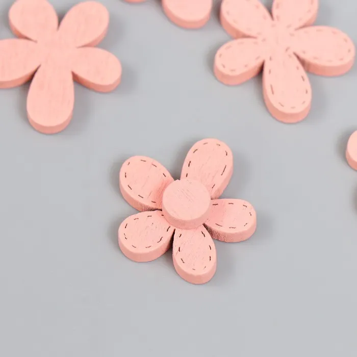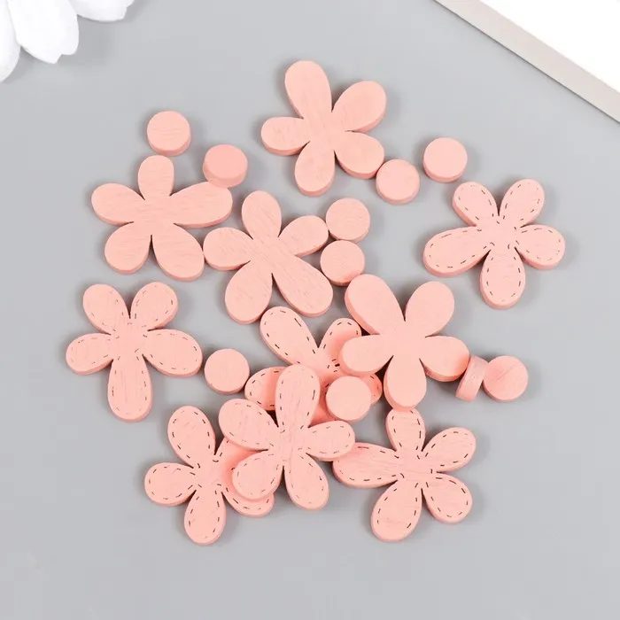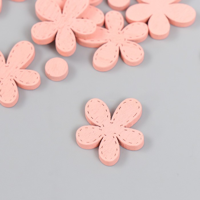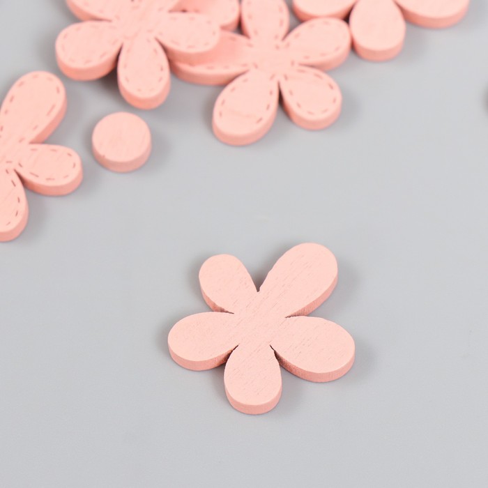 Декор для творчества дерево «Ромашка и сердцевинка», набор 10+10 шт., розовая пудра, 2.3×2 см