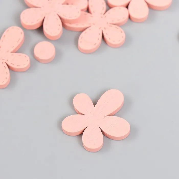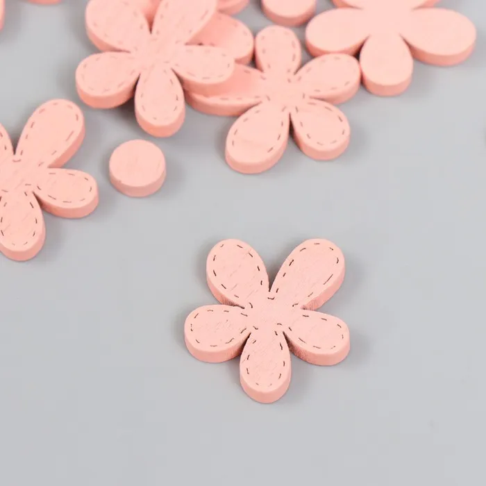 Декор для творчества дерево «Ромашка и сердцевинка», набор 10+10 шт., розовая пудра, 2.3×2 см — Характеристики