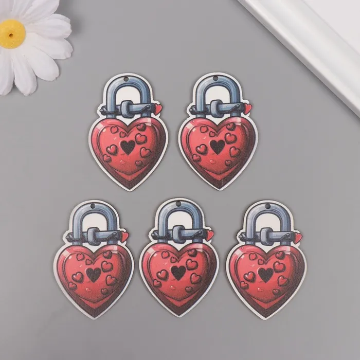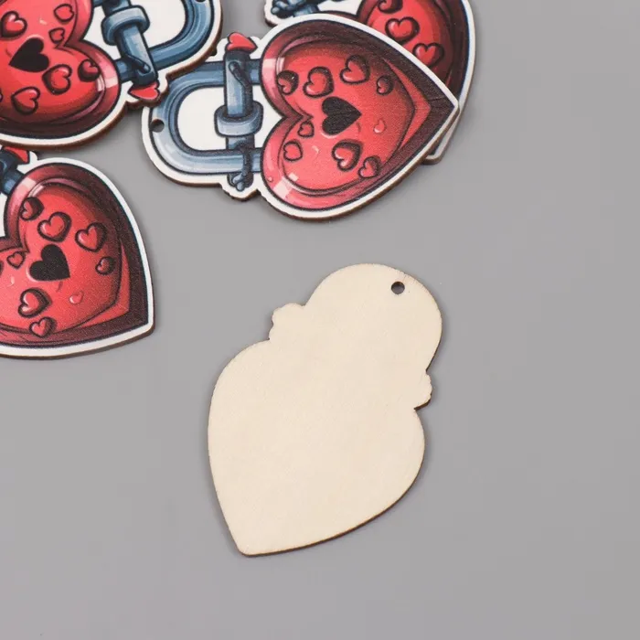 Декор для творчества дерево «Сердце-замочек», набор 5 шт., 5.5×3.7×0.3 см — Характеристики