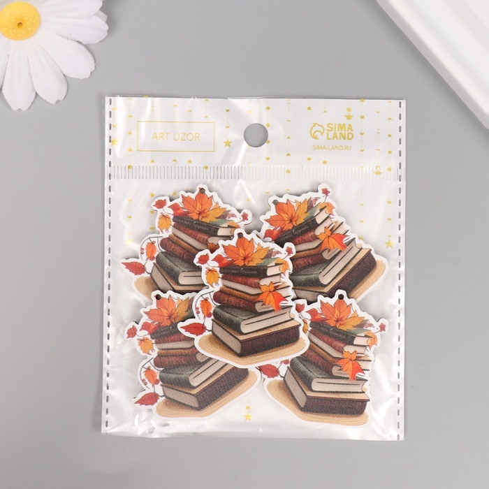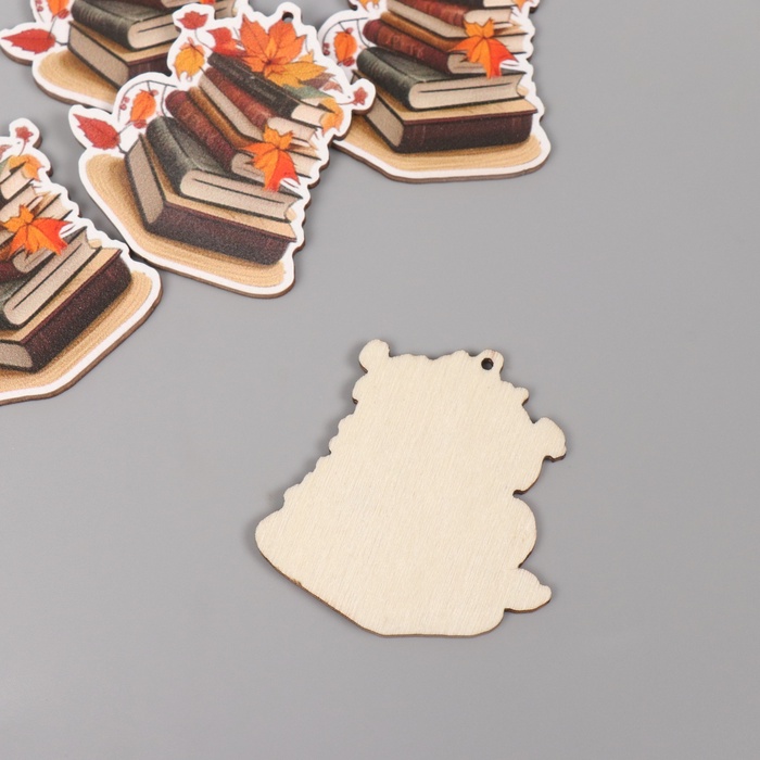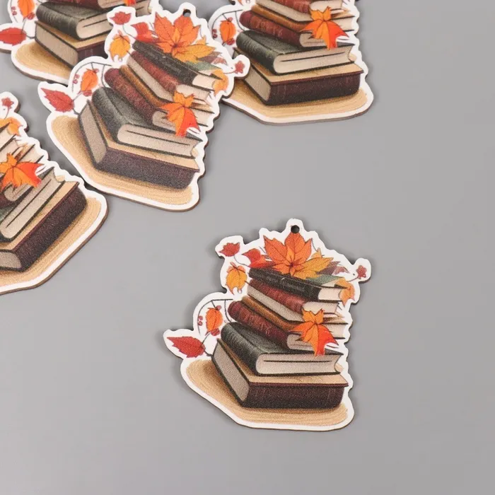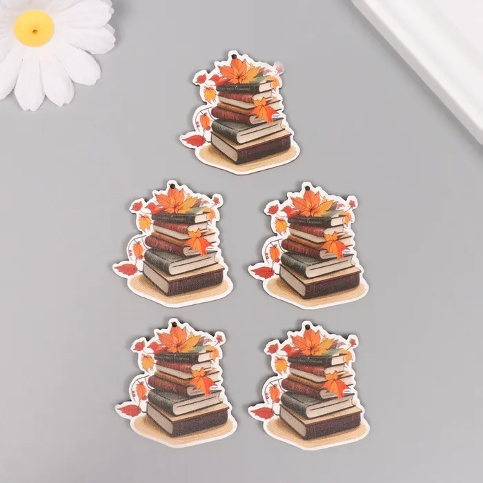 Декор для творчества дерево «Стопка книг с осенними листьями», 4.4×4.2×0.3 см — Характеристики