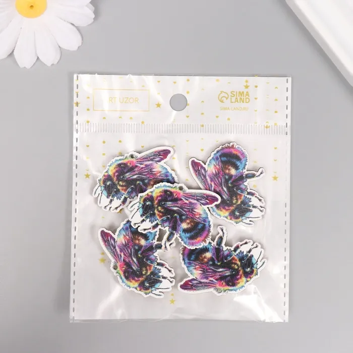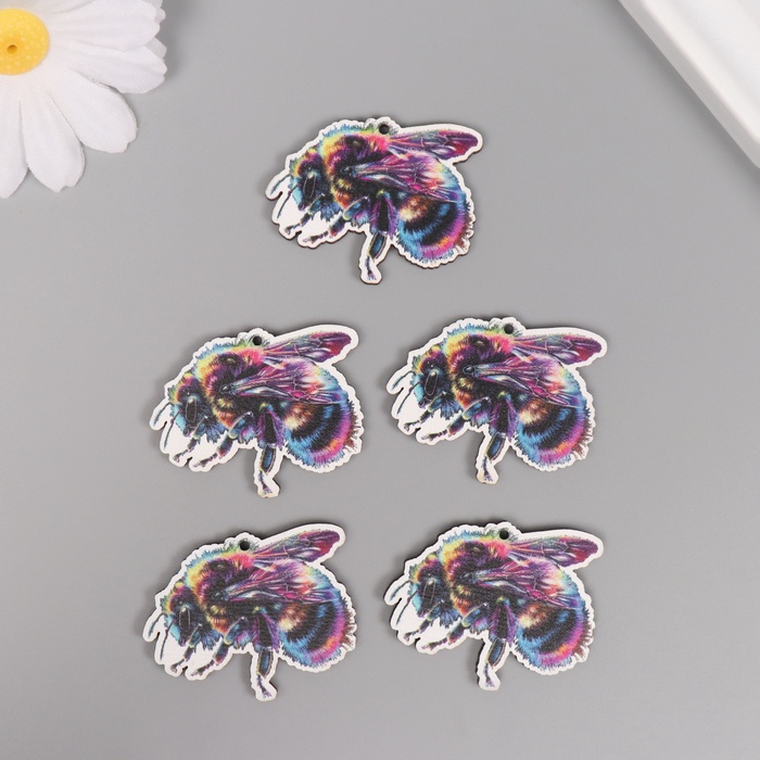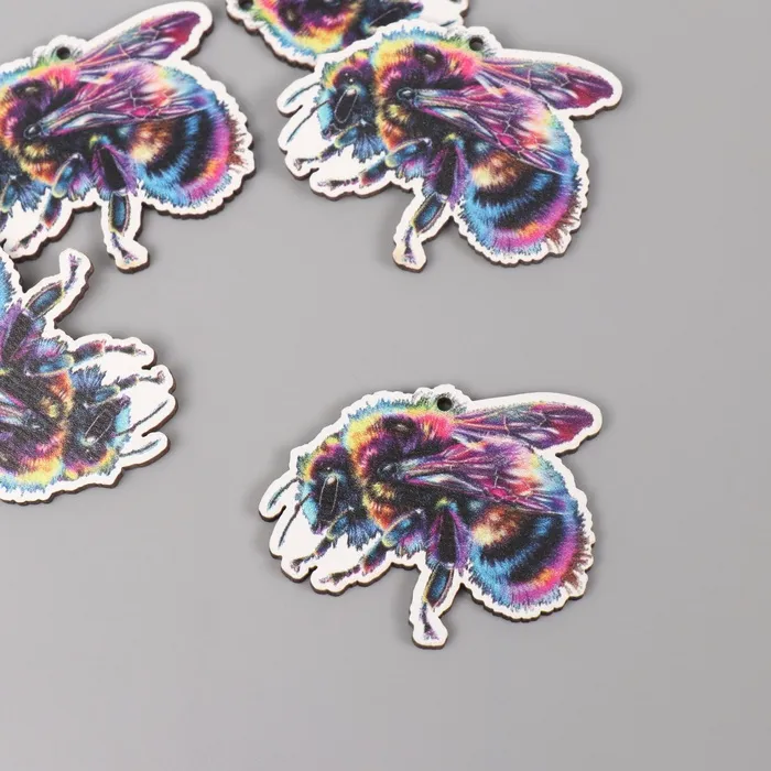 Декор для творчества дерево «Цветная пчела», 3.3×3.9×0.3 см — Характеристики