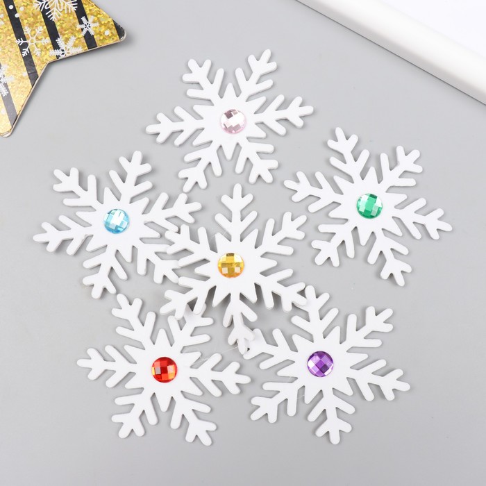 Декоративный элемент для творчества «Снежинка со стразой», набор 6 шт., белая, 6.5 см, фоамиран