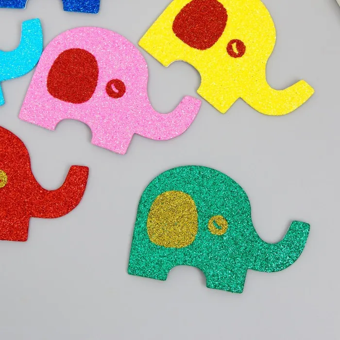 Декор для творчества EVA «Слоники», блёстки, набор 6 шт., 13×15 см