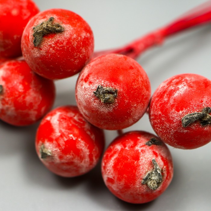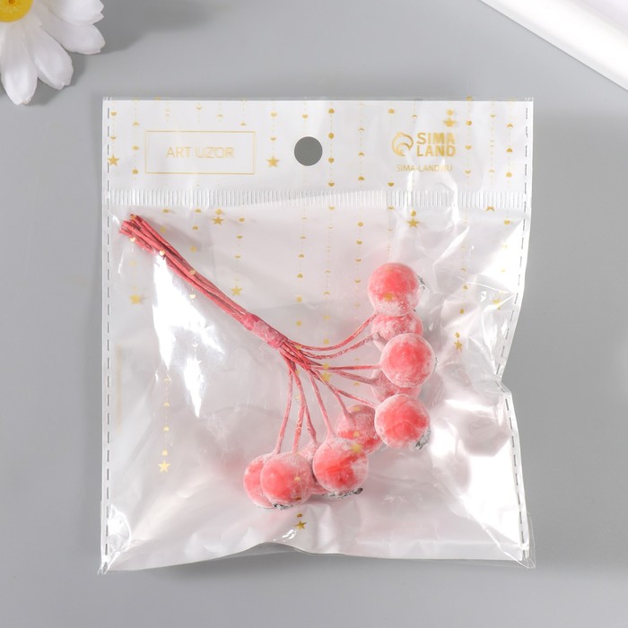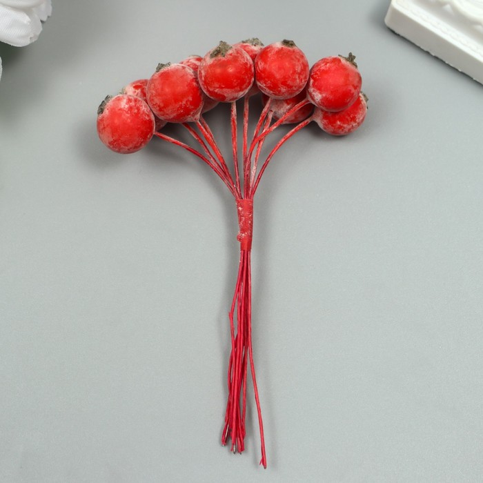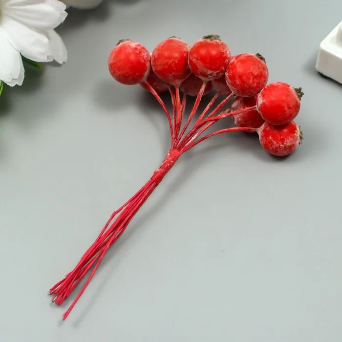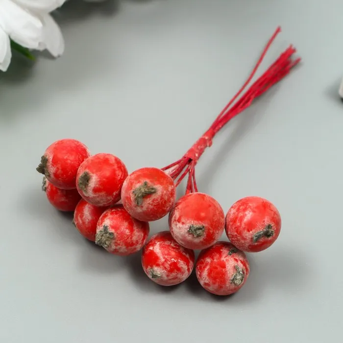 Декор для творчества «Ягодка рябины», 1 букет=10 ягод, красно-бордовый иней, 10×1.5 см