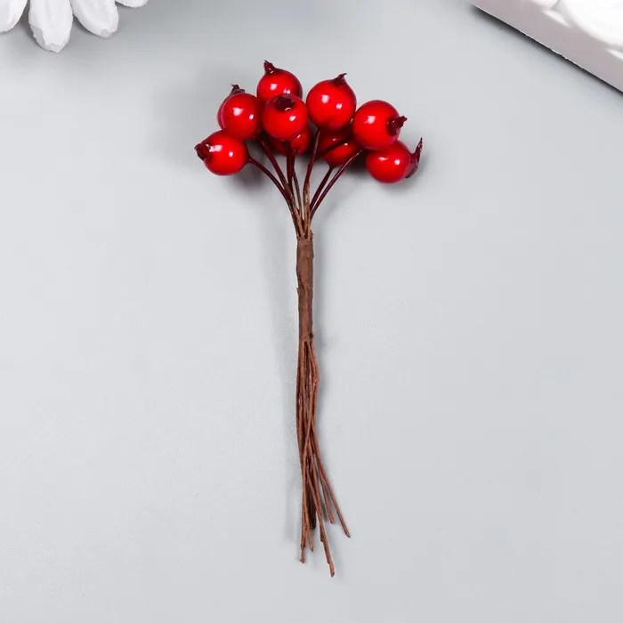 Декор для творчества «Ягодки красные», 1 букет=10 ягод, d=1 см, 10 см — Характеристики