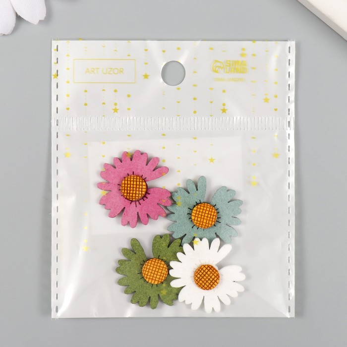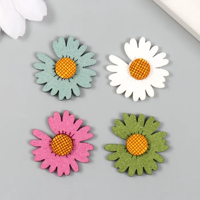 Декор для творчества иск. замша «Цветная ромашка», 2.5×2.5 см, МИКС — Характеристики