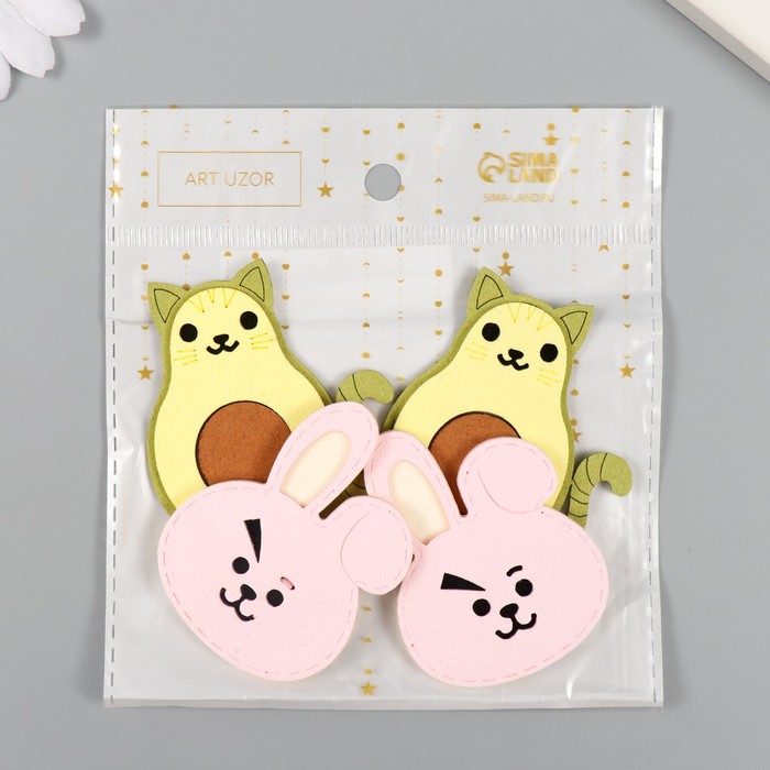 Декор для творчества иск. замша «Зверята и фрукты», 6×3.7 см, МИКС — Характеристики