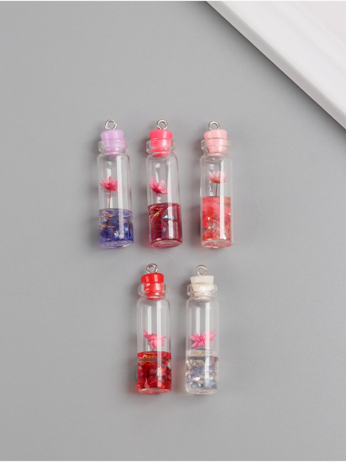 Подвеска для творчества акрил «Бутылочка с цветком», светится в темноте, 1.1×1.1×4.2 см, МИКС
