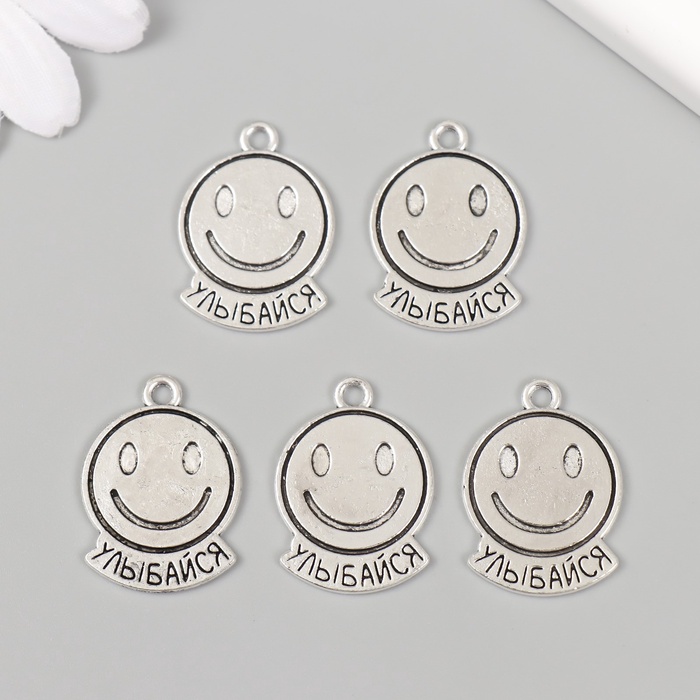 Металлический элемент, декоративная подвеска «Смайл: Улыбайся», набор 5 шт., 1.9×2.5 см