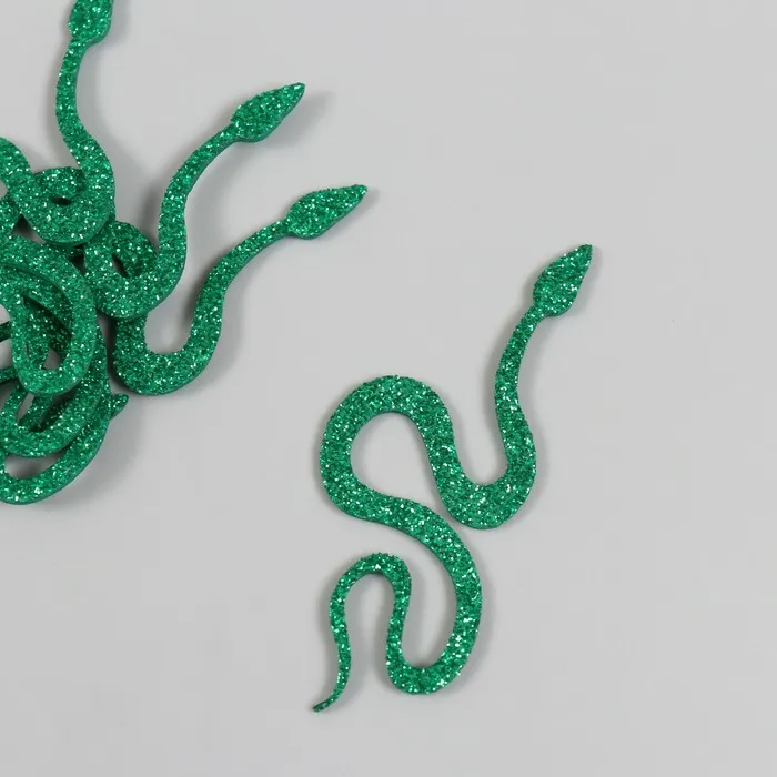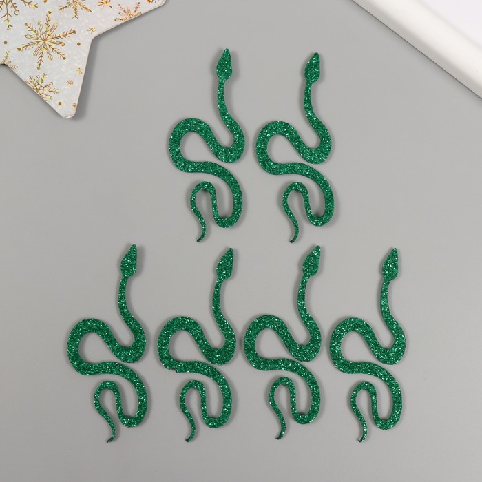 Декор для творчества из фоамирана «Зеленая змея», глиттер, 7 см, (набор 6 шт.)