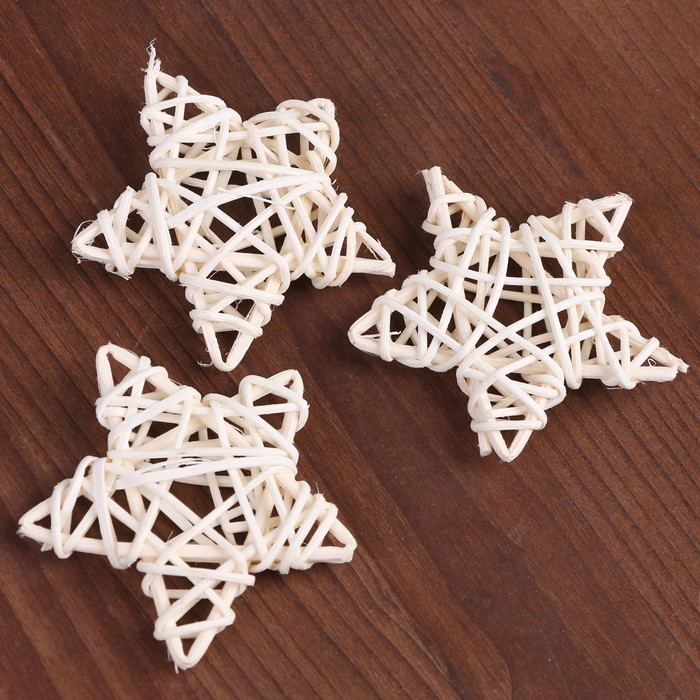 Декор для творчества из лозы «Звезда» набор 3 шт., размер 1 шт. — 6,5 см, цвет натуральный