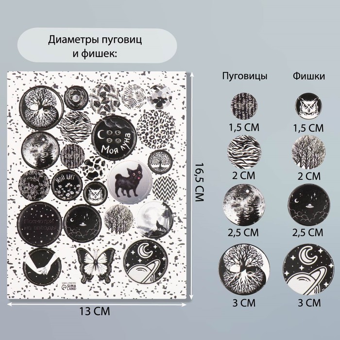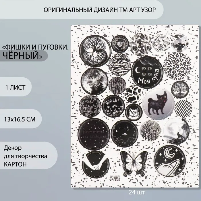 Декор для творчества картон «Фишки и пуговки. Чёрный», 24 шт., 13×16.5 см — Характеристики