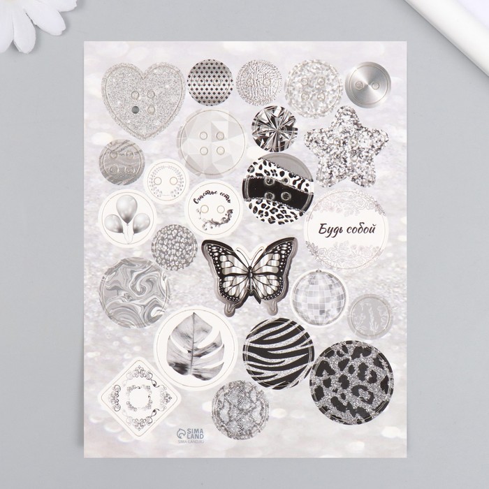 Декор для творчества картон «Фишки и пуговки. Серебристый», 24 шт. 13×16.5 см
