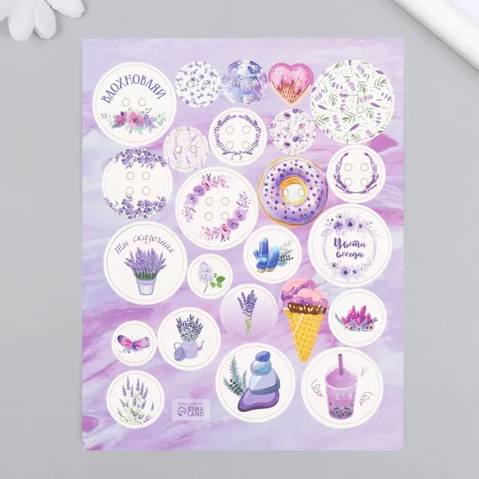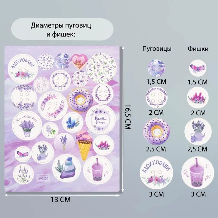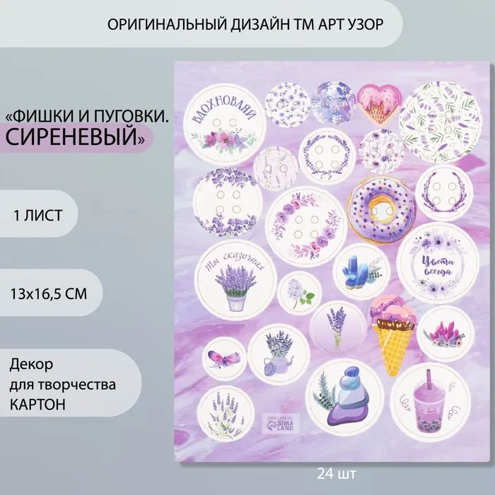 Декор для творчества картон «Фишки и пуговки. Сиреневый», 24 шт., 13×16.5 см — Характеристики
