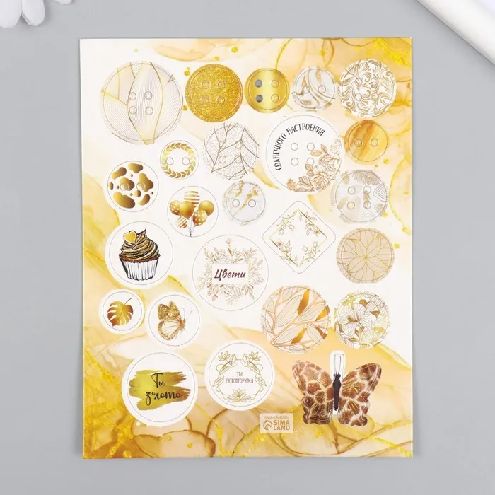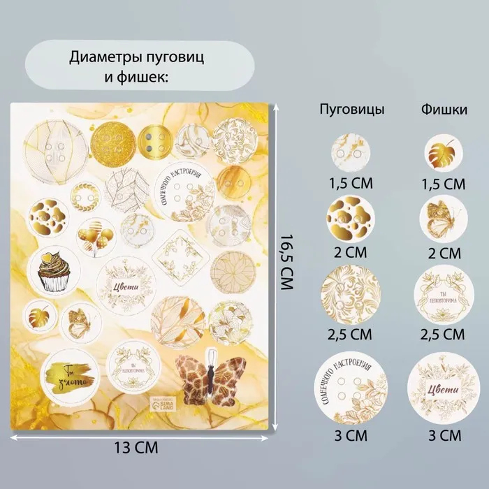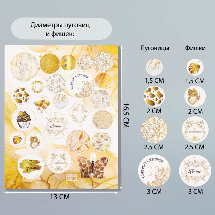 Декор для творчества картон «Фишки и пуговки. Золотой», 24 шт., 13×16.5 см — Характеристики