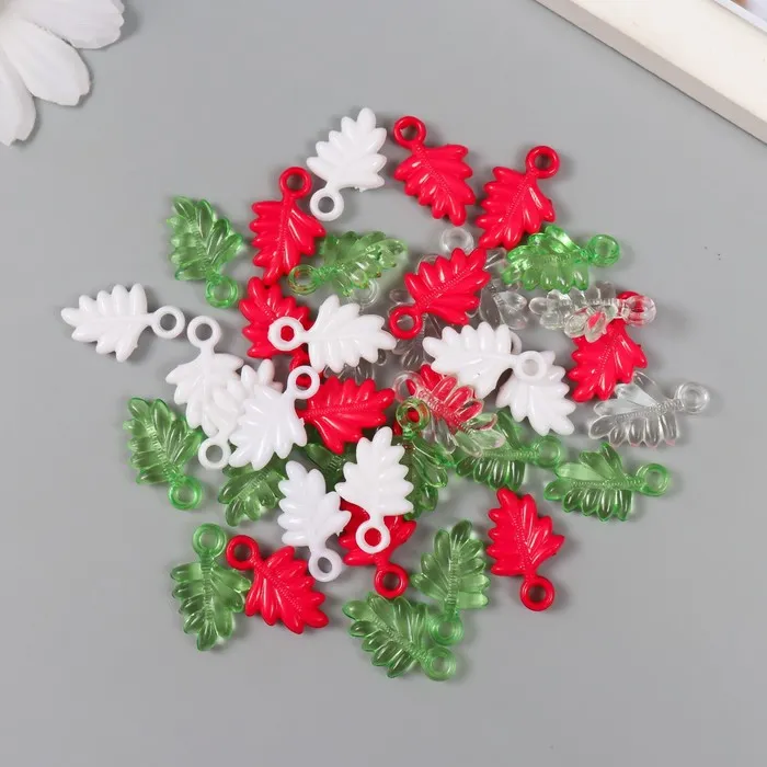 Декор для творчества «Листья. Розовый, зелёный, белый и прозрачный», набор 20 г, 2.2×1.4×0.4 см — Характеристики