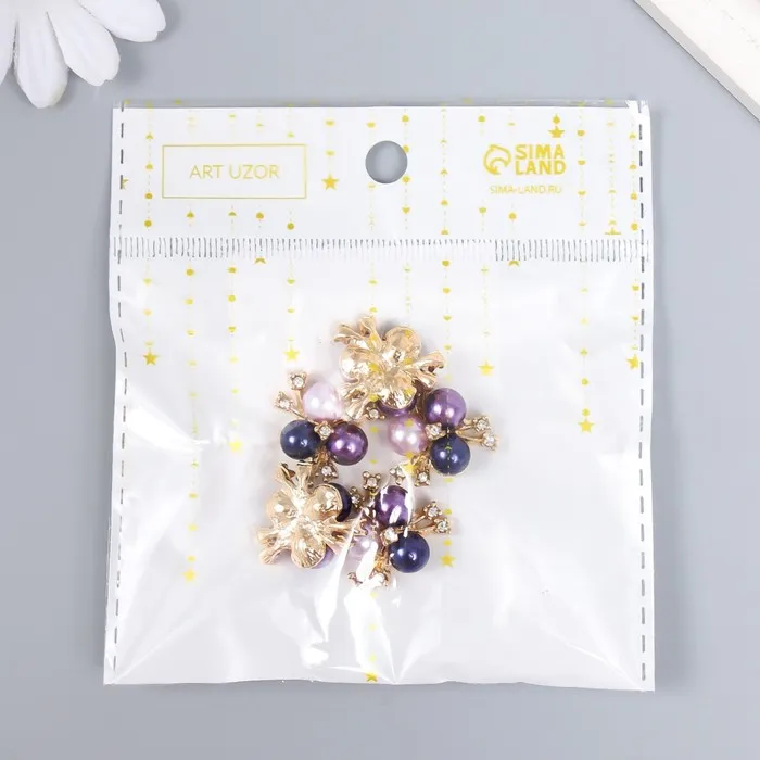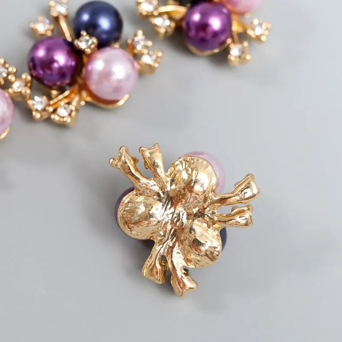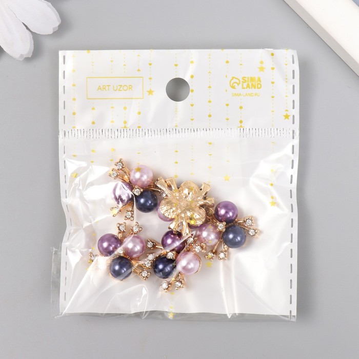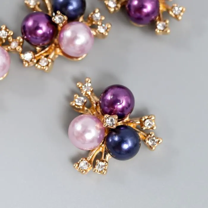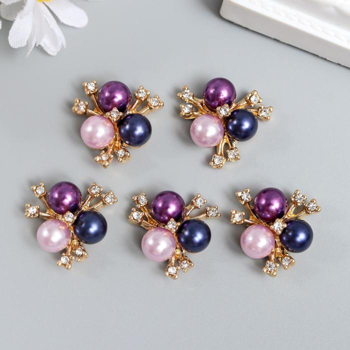 Декор для творчества металл «3 жемчужины со стразами», сине-фиолетовый набор 5 шт., 2×2 см — Характеристики