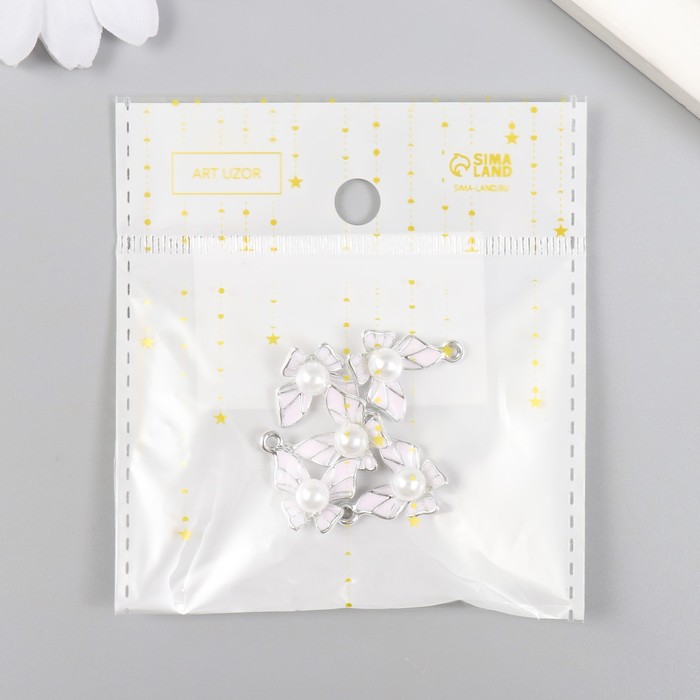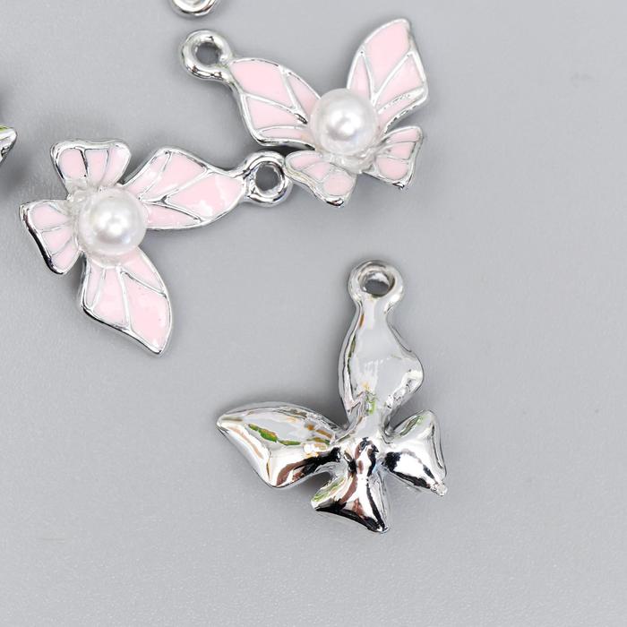 Декор для творчества металл, эмаль «Бабочка с жемчужиной» серебро МИКС 1.5×1.5 см — Характеристики