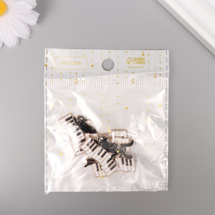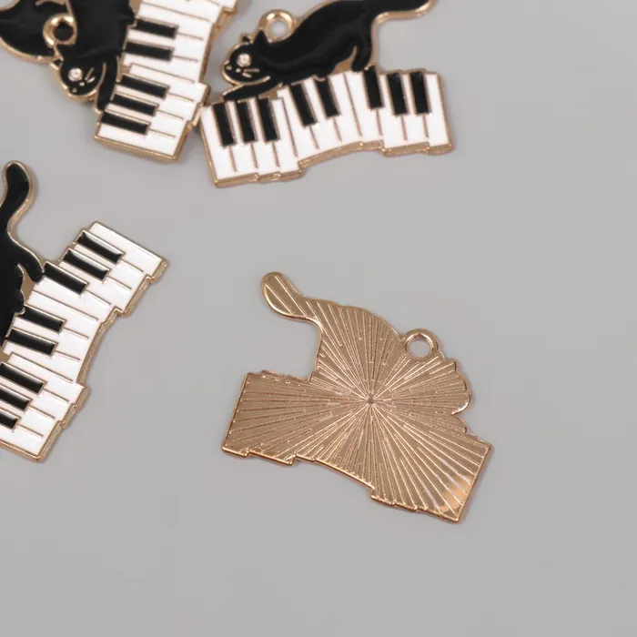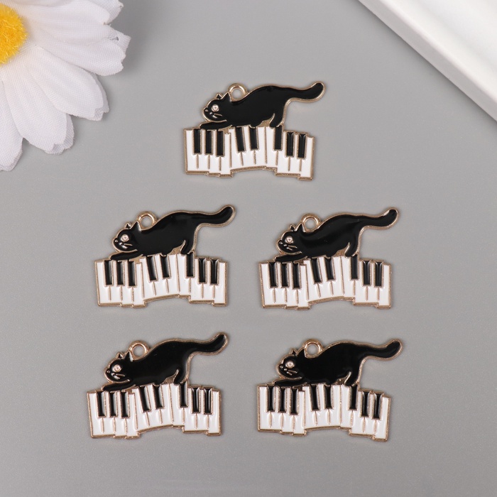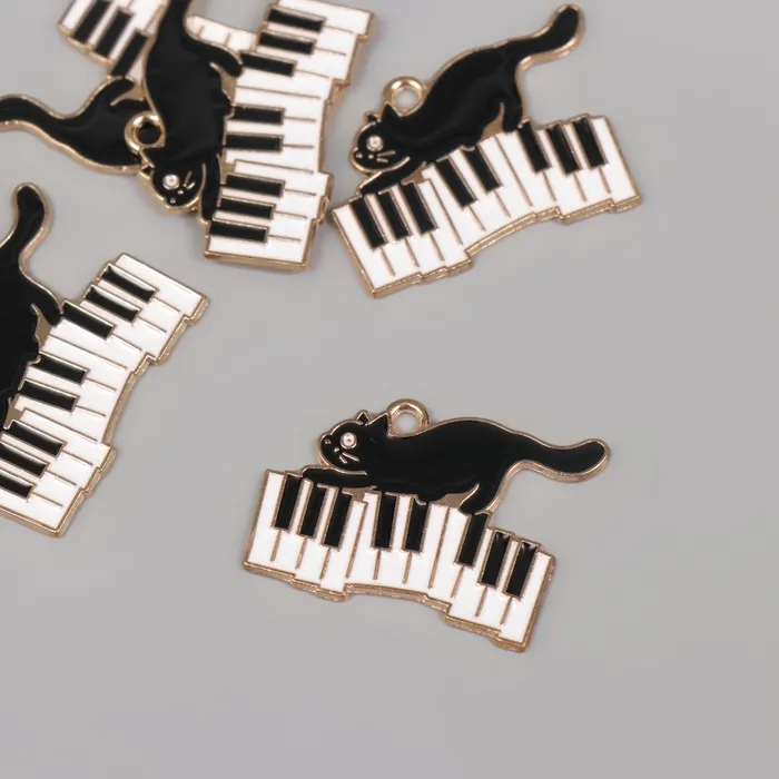 Декор для творчества металл, эмаль «Чёрный котик и пианино», 2.9×2 см — Характеристики