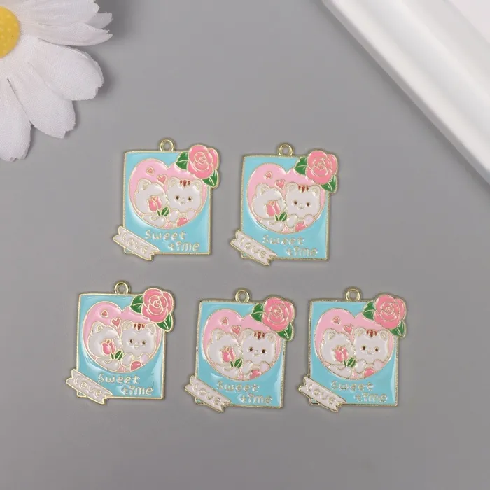Декор для творчества металл, эмаль «Два влюблённых котика», 2.8×2.4 см — Характеристики