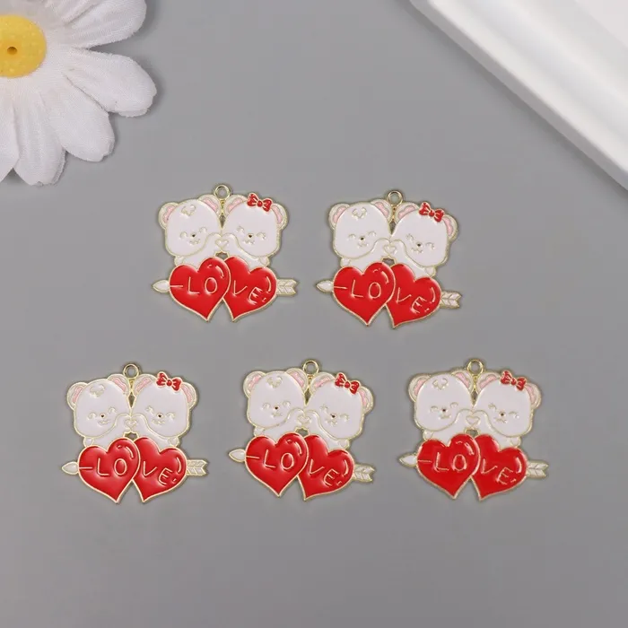 Декор для творчества металл, эмаль «Два влюблённых мишки», 2.8×2.8 см — Характеристики