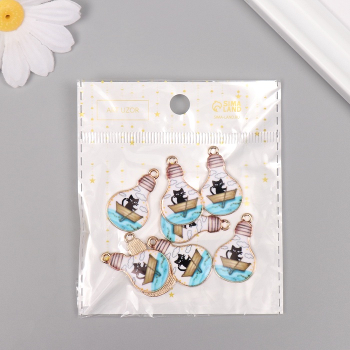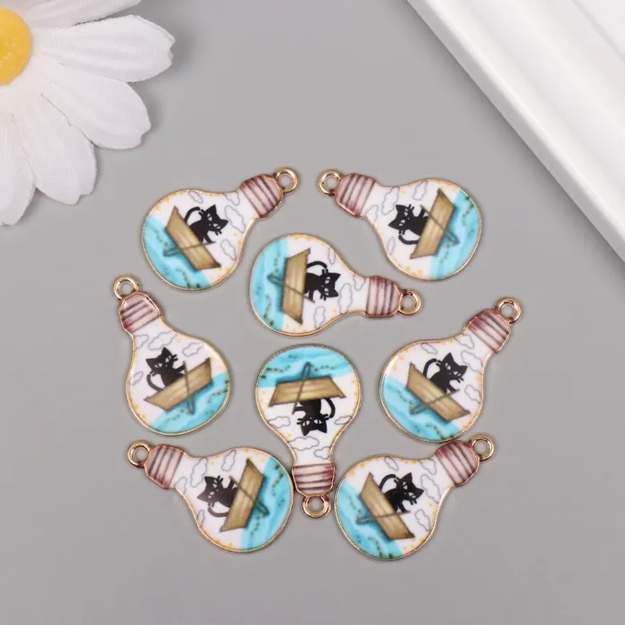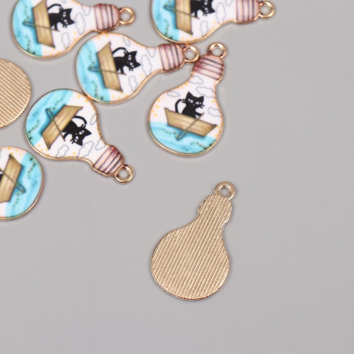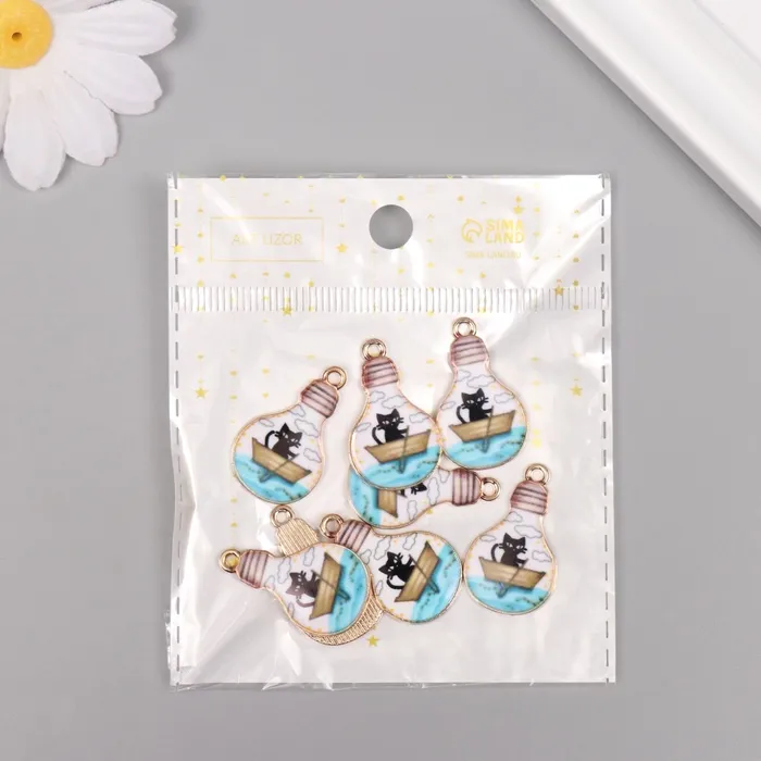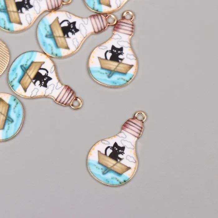 Декор для творчества металл, эмаль «Кот на лодке в лампочке», 2.8×1.6 см — Характеристики