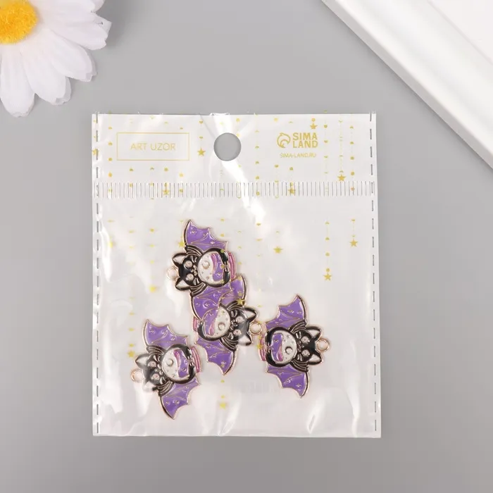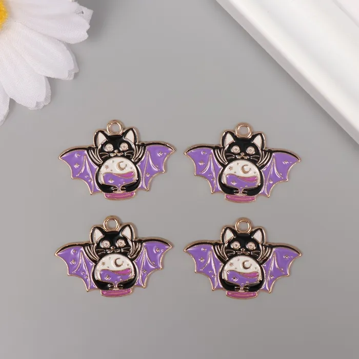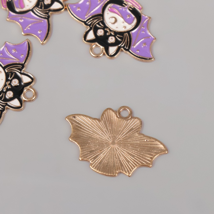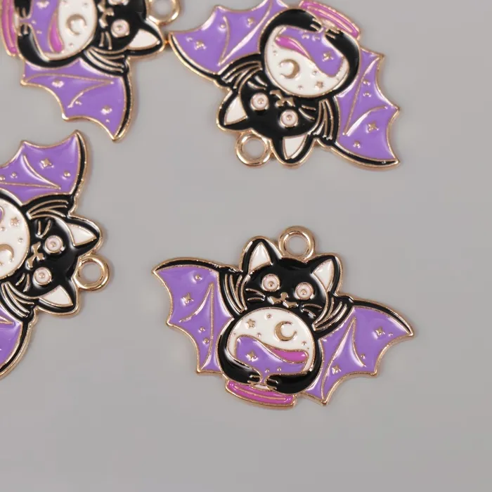 Декор для творчества металл, эмаль «Котик-летучая мышь», чёрно-фиолетовый, 2×2.9 см — Характеристики