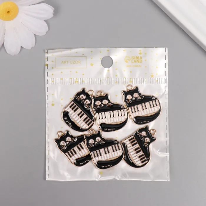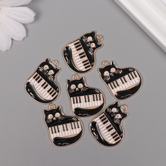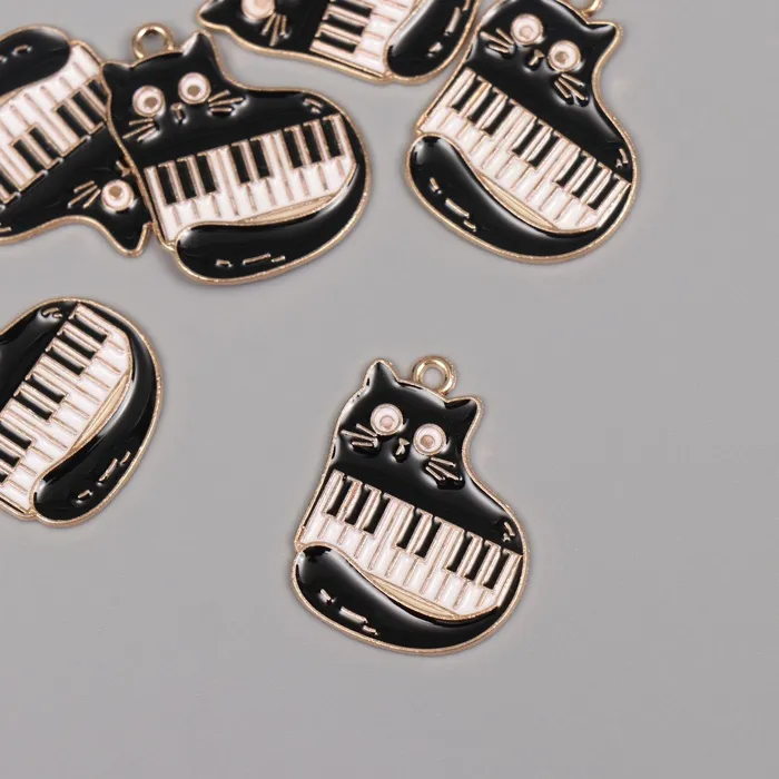 Декор для творчества металл, эмаль «Котик с синтезатором», 2.3×2.2 см — Характеристики