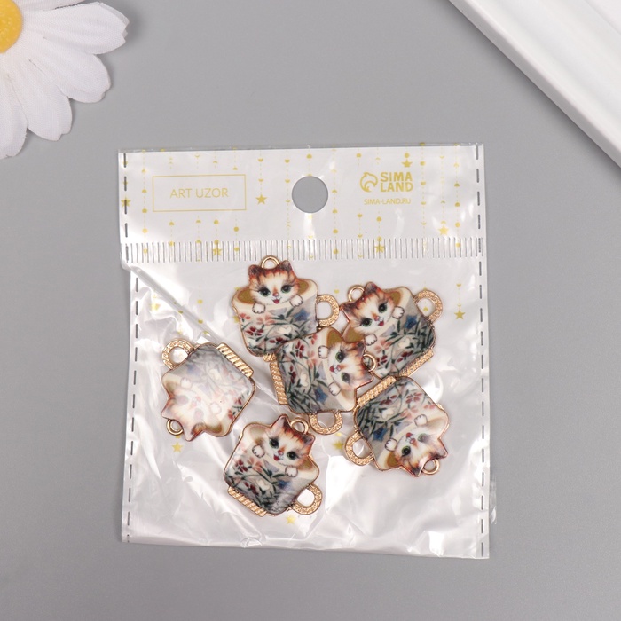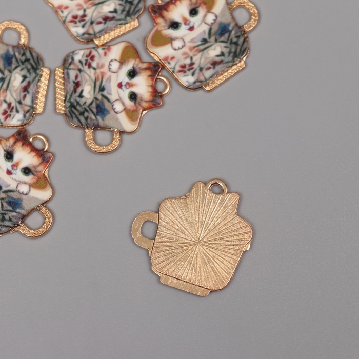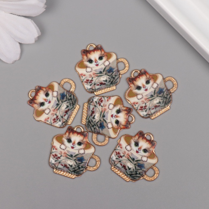 Декор для творчества металл, эмаль «Котик в чашке», 2.3×2.3 см — Характеристики